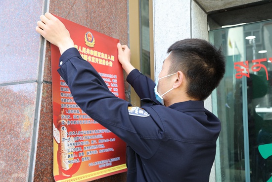 亞?wèn)|出入境邊防檢查站民警在縣主要街道張貼圖書(shū)室開(kāi)放公告。張雨強(qiáng) 攝