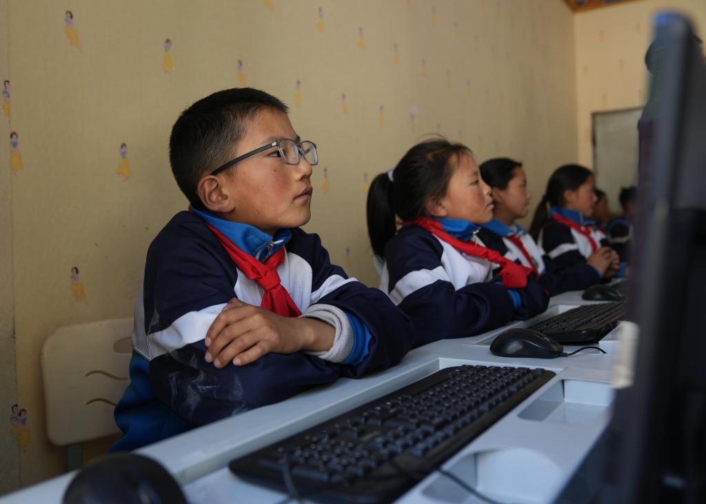 在娘蒲鄉(xiāng)中心小學,貢喬熱旦在上計算機課(9月3日攝)。新華社記者 晉美多吉 攝