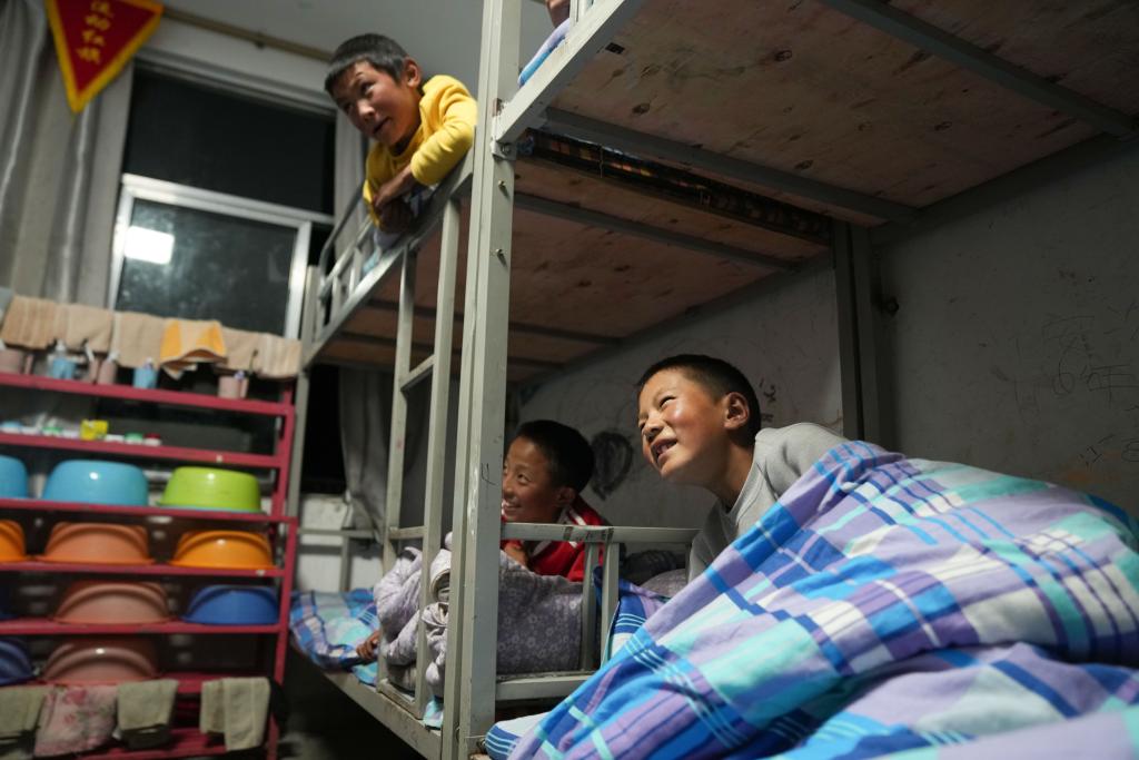 在娘蒲鄉(xiāng)中心小學,貢喬熱旦(右下)就寢前和舍友閑談(9月3日攝)。新華社記者 晉美多吉 攝