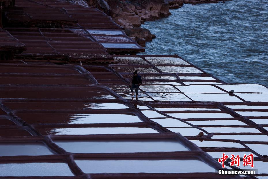 12月20日,在西藏自治區(qū)昌都市芒康縣,千年鹽田宛如大地的藝術(shù)畫卷。數(shù)千塊鹽田錯落于瀾滄江畔,傳承千年曬鹽技藝。鹽民們遵循古老傳統(tǒng),引水曬鹽,白色鹽晶在陽光下閃耀。這里不僅是鹽業(yè)生產(chǎn)地,更是文化瑰寶,見證歲月變遷,承載民族記憶。近年來,其獨特景觀更是吸引眾多游客前來。圖為鹽工在鹽田中勞作。