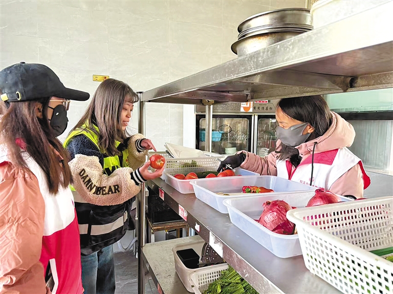圖為活動中,工作人員在某餐館檢查食材新鮮度。 記者 孫開遠(yuǎn) 索朗曲珍 攝