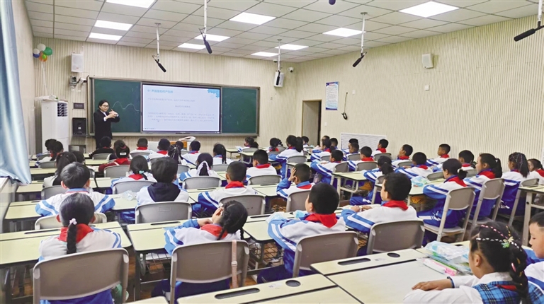 本次活動(dòng)以單課時(shí)科普課程為載體,聚焦“聲音是如何產(chǎn)生的”“聲音為什么會(huì)不同”“聲音是如何傳播的”“我們是如何聽到聲音的”四大核心問題,針對(duì)小學(xué)三至五年級(jí)學(xué)生不同的知識(shí)儲(chǔ)備,設(shè)計(jì)出“排簫音調(diào)實(shí)驗(yàn)”“鼓膜振動(dòng)模型”“八弦琴音色對(duì)比”“簡(jiǎn)易擴(kuò)音器制作”“真空罩聲音衰減”5個(gè)生動(dòng)有趣的科學(xué)實(shí)驗(yàn),分層實(shí)施教學(xué),激發(fā)了學(xué)生們探索科學(xué)的濃厚興趣。