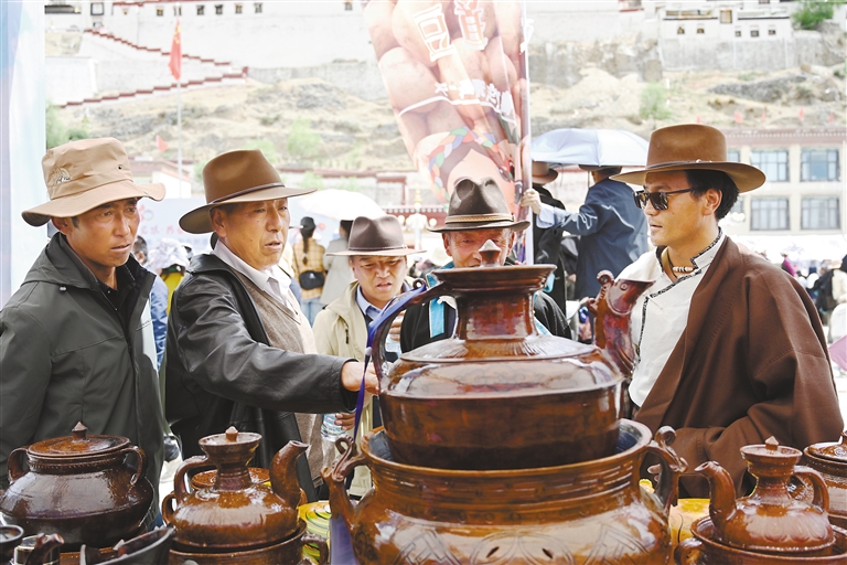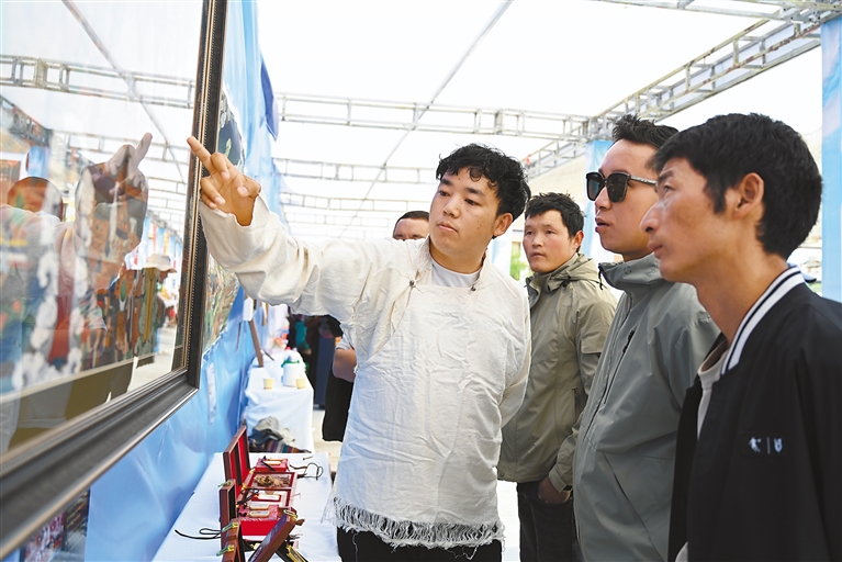 在欣賞視聽盛宴的同時,國家級非遺項(xiàng)目江孜卡墊織造技藝、自治區(qū)級非遺項(xiàng)目牛村陶器制作技藝、市級非遺項(xiàng)目恰哇編織技藝等50個非遺項(xiàng)目,以及民族手工業(yè)產(chǎn)品、南木林縣縣級非遺產(chǎn)品集中展覽展銷,備受消費(fèi)者青睞。各非遺產(chǎn)品展銷點(diǎn)收入不斷、訂單不斷,經(jīng)初步統(tǒng)計(jì),活動現(xiàn)場非遺產(chǎn)品銷售總額達(dá)45萬余元。