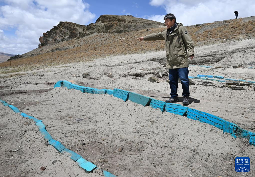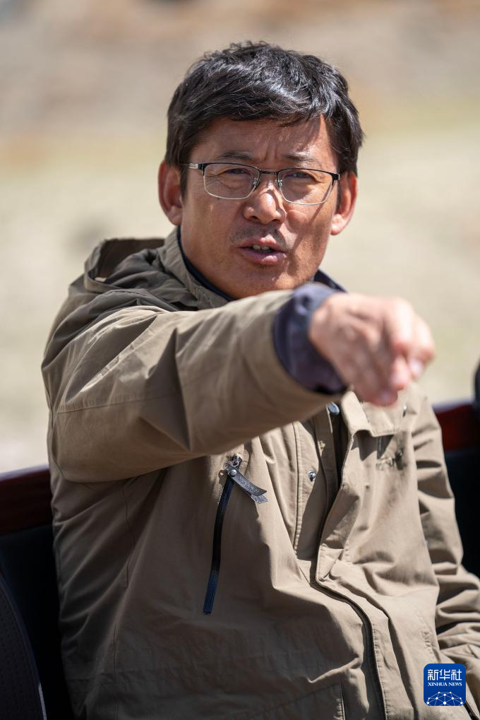 5月22日,聯(lián)合考古隊領(lǐng)隊夏格旺堆在瑪不錯遺址向記者介紹考古發(fā)掘情況。新華社記者 旦增尼瑪曲珠 攝