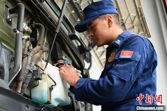圖為消防員正在保養(yǎng)車(chē)輛。西藏林芝市森林消防支隊(duì)供圖