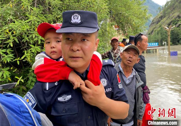 圖為7月8日,西藏吉隆出入境邊防檢查站民警轉(zhuǎn)移口岸區(qū)域受災民眾。肖富貴 攝