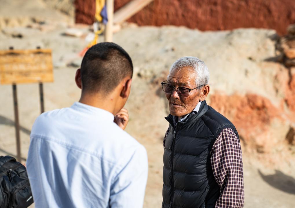 “這些壁畫,是1000多年前畫上去的?!?7歲的東嘎村村民仁增旺扎拄著拐杖,向游客耐心講解。盡管已從文保員的崗位上退休,但20多年來守護石窟的習慣早已刻進了生活。他的身影仍不時出現(xiàn)在石窟間,像往常一樣,講述這些千年壁畫背后的故事。