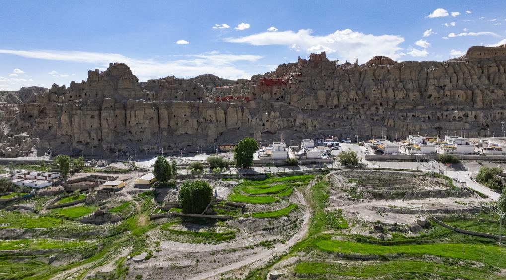 俯瞰皮央石窟群(無人機照片)。新華社記者 丁增尼達 攝