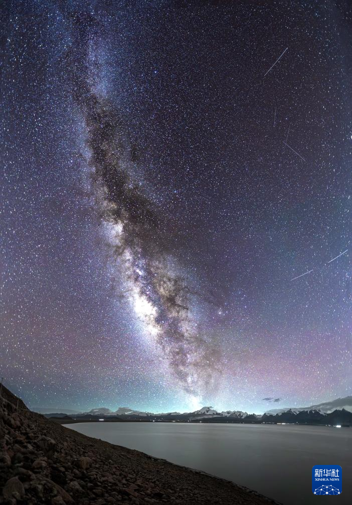 這是在佩枯錯(cuò)拍攝的銀河(8月14日攝)。周邊是英仙座流星雨的幾顆流星。新華社發(fā)(馬理朝攝)