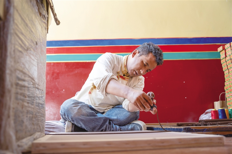 尼木縣普松鄉(xiāng)是著名的“雕刻之鄉(xiāng)”,作為“尼木三絕”之一的普松雕刻是普松鄉(xiāng)群眾世世代代傳承下來(lái)的一項(xiàng)古老技藝。近年來(lái),在尼木縣政府的積極引導(dǎo)和扶持下,普松雕刻這一傳統(tǒng)技藝得以煥發(fā)新生,一把刻刀、一塊木板,在匠人手中如同神奇的畫(huà)筆,在鄉(xiāng)村振興的畫(huà)卷上繪就出絢麗多彩的致富圖景。