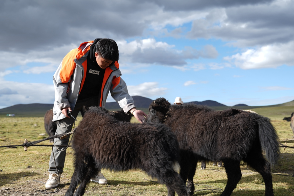 圖為巴登求扎團(tuán)隊(duì)工作人員查看牧區(qū)牦牛情況。何欣然攝