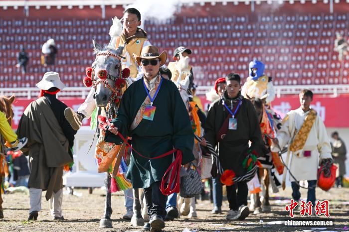 圖為參賽選手準備參加恰青賽馬節(jié)傳統(tǒng)大跑決賽。中新社記者 貢嘎來松 攝