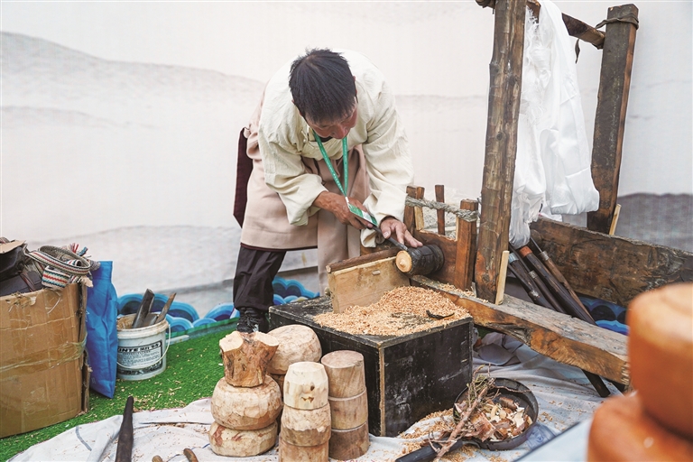 比如縣白嘎鄉(xiāng)的木碗制作傳承人杰參年扎的作品榮獲銀獎。他表示:“作為一名木碗制作技藝的非遺代表性傳承人,我深知責(zé)任重大,將來一定努力把這門有一千三百多年歷史的手藝傳承下去?!?/p>