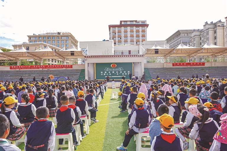 9月9日上午,由自治區(qū)高級人民法院、自治區(qū)人民檢察院、自治區(qū)教育廳、自治區(qū)公安廳、自治區(qū)司法廳、自治區(qū)普法辦、自治區(qū)戒毒管理局聯(lián)合主辦的西藏自治區(qū)2025年“送法進校園”系列普法宣傳示范活動走進拉薩市實驗小學東城分校,為師生們帶來了一場生動的法治課堂。