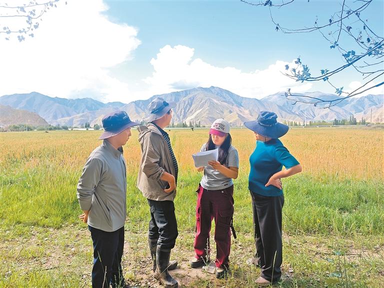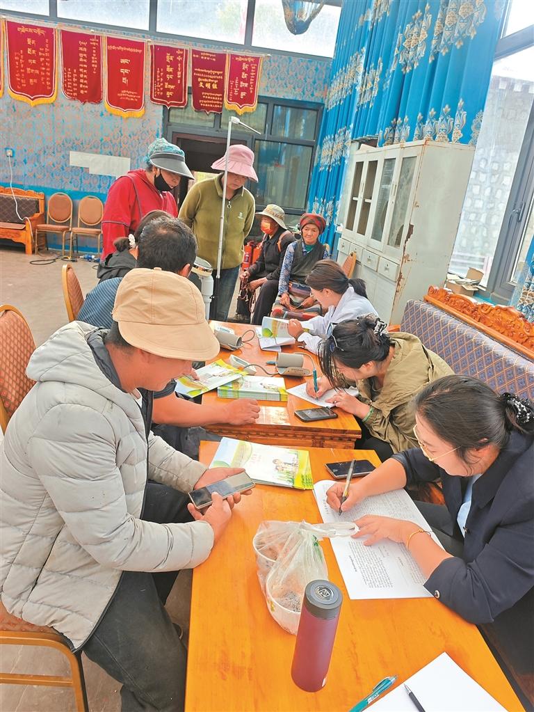 “五彩梅朵·曲水心橋”志愿服務(wù)隊耐心為村民組長講解政策。