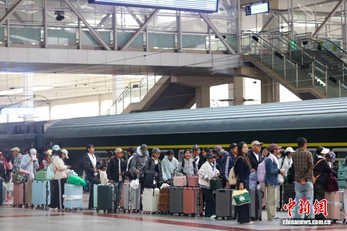 圖為拉薩火車站,學(xué)生排隊等候上車。武春燕 攝
