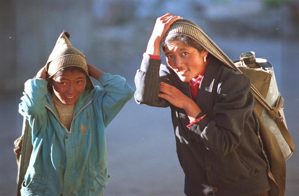 在西藏的阿里高原,背水一度是當地藏民獲取生活用水的主要方式。(1997年10月26日發(fā))