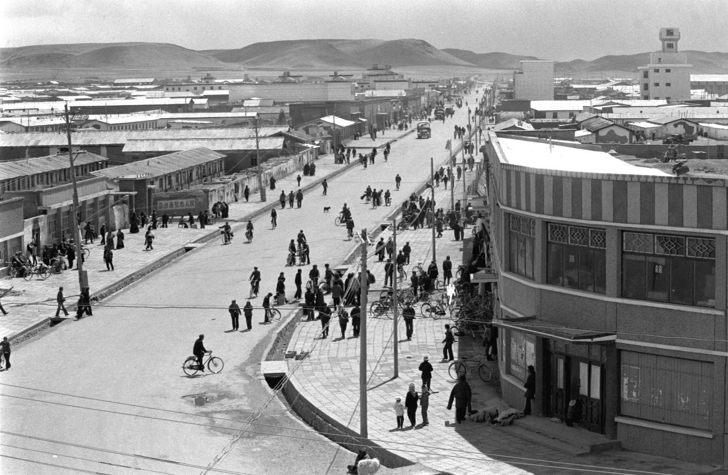 連接西藏和內地的交通大動脈青藏公路的修筑和暢通,給西藏的經濟發(fā)展帶來了巨大的變化。圖為1987年青藏公路線上的西藏那曲鎮(zhèn)。