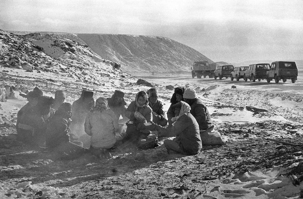 109道班工人風餐露宿,化冰燒茶,雪拌糌粑,習以為常。 (1991年1月5日發(fā))