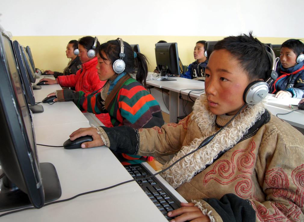 由中海油援建的尼瑪縣小學學生在上計算機課(2009年9月13日攝)。