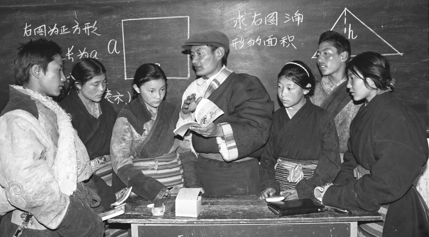 藏北高原班戈縣小學校長申卻堅村(藏族)給學生上課。(1988年1月30日發(fā))