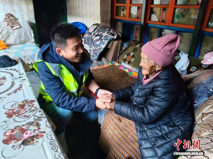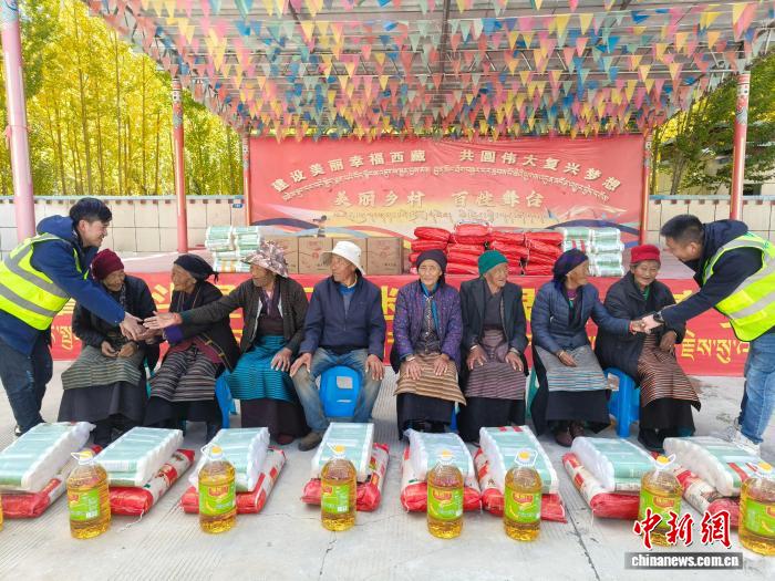 圖為西藏山南瓊結(jié)風電項目赴仲堆村慰問孤寡老人。中建二局 供圖