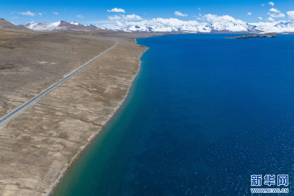 10月9日拍攝的普莫雍錯觀景點(無人機照片)。新華網(wǎng) 旦增努布 攝
