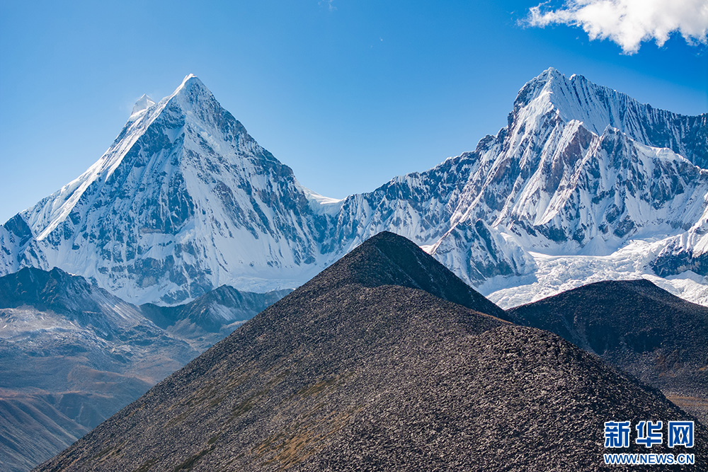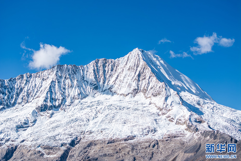 10月11日拍攝的庫拉崗日雪山(無人機(jī)照片)。新華網(wǎng) 旦增努布 攝