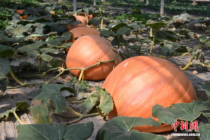 當前,園區(qū)聚焦蔬菜主業(yè),種植15個品種蔬菜,年產(chǎn)量達421噸,較去年增長3%;在帶動民眾增收方面,園區(qū)成效顯著,不僅向53戶農(nóng)戶支付92.1萬元土地流轉費,還累計提供4367人次臨時用工崗位,發(fā)放勞務費71.37萬元,切實讓民眾共享現(xiàn)代農(nóng)業(yè)發(fā)展紅利。圖為墨竹工卡縣現(xiàn)代化農(nóng)業(yè)示范園里種植的巨型南瓜。中新社記者 貢嘎來松 攝