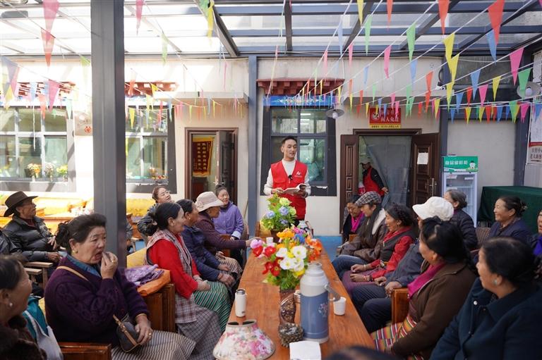 “這些是我的學(xué)生,他們來啦!”每天清晨,看著老人們陸續(xù)走進(jìn)教室,城關(guān)區(qū)蕃陽社會(huì)工作者和志愿者服務(wù)協(xié)會(huì)工作人員、策門林老年日間照料中心主任扎西拉姆總會(huì)笑著迎上去。從事老年教育近四年,她既是處理財(cái)務(wù)、整理數(shù)據(jù)的“后勤員”,也是教舞蹈、講知識(shí)的“授課老師”,更成了老人們信任的“貼心人”。