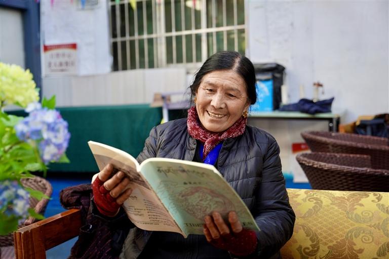 62歲的巴桑卓瑪也在課堂里找回了新的生活樂趣?!耙郧拔也蛔R(shí)字,來這兒一年多,不僅學(xué)會(huì)了讀和寫,還學(xué)到了很多新知識(shí)?!卑蜕W楷斦f,“現(xiàn)在生活好了,就想多學(xué)些新東西,每天都盼著來教室,根本不想待在家里。當(dāng)初也是聽大家都說這里好,我才來的,現(xiàn)在覺得來對(duì)了!”