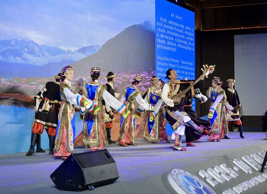 開幕式在《吉祥工布》的旋律中拉開了序幕。舞者們身著色彩斑斕的工布服飾,仿佛從雪山深處走來的精靈,正以熱情的舞步迎接八方賓客,每一個轉(zhuǎn)身、跳躍都充滿了對遠道而來客人的真摯歡迎。