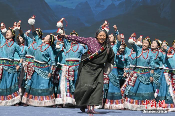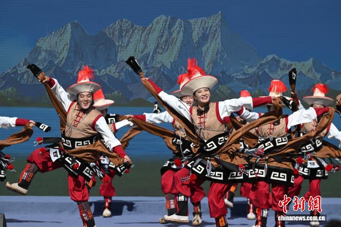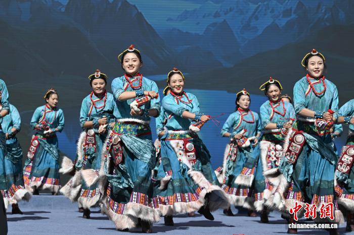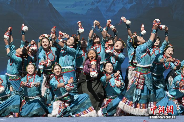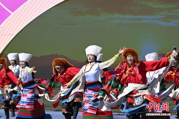 圖為阿里地區(qū)改則縣藝術(shù)團(tuán)表演舞蹈《歡舞幸福·改則情》。中新社記者 貢嘎來松 攝