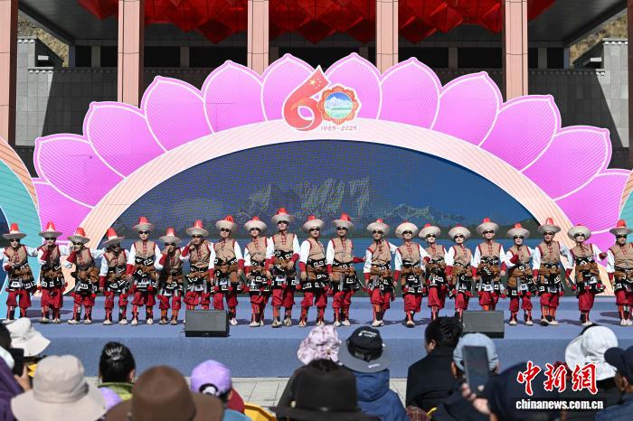 11月2日,西藏自治區(qū)“大地歡歌 格桑花演出季”全區(qū)縣(區(qū))藝術(shù)團(tuán)惠民演出活動,在拉薩市堆龍德慶區(qū)民族團(tuán)結(jié)主題公園精彩上演。據(jù)悉,此次演出由西藏自治區(qū)文化和旅游廳主辦,西藏自治區(qū)群藝館(區(qū)非遺保護(hù)中心)承辦,各市地文旅局及拉薩市堆龍德慶區(qū)委宣傳部、文旅局協(xié)辦,以展示基層文化活力、豐富民眾精神生活為核心,匯聚了西藏各縣(區(qū))藝術(shù)團(tuán)骨干力量,這些扎根鄉(xiāng)土的“文藝輕騎兵”,成為基層文化傳播的“主力軍”。圖為山南市隆子縣藝術(shù)團(tuán)表演打墻舞《扎西康?!贰V行律缬浾?貢嘎來松 攝