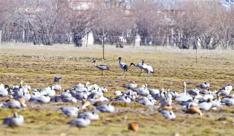 近年來,西藏多措并舉實(shí)施生態(tài)建設(shè)工程,黑頸鶴數(shù)量逐年遞增,目前西藏黑頸鶴數(shù)量超過萬只,每年到拉薩市林周縣越冬的黑頸鶴有2000只左右。