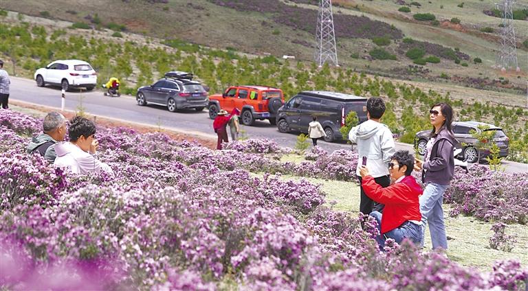 圖為游客在杜鵑花海中玩賞。扎西 記者 萬(wàn)慧 攝