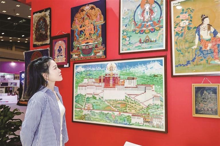場館外,熱情奔放的康巴歌舞洋溢著濃郁的民族風(fēng)情。走進場館內(nèi)部,可以近距離體驗藏香制作和飄逸靈動的藏文書法。唐卡漆畫、民族手工飾品等藏東文化和蟲草、貝母、藏紅花等特色產(chǎn)品琳瑯滿目,更有邊壩三色湖、貢覺拉妥濕地、芒康千年鹽田、洛隆俄西杏花等雪域美景,進館咨詢互動的企業(yè)、嘉賓絡(luò)繹不絕。