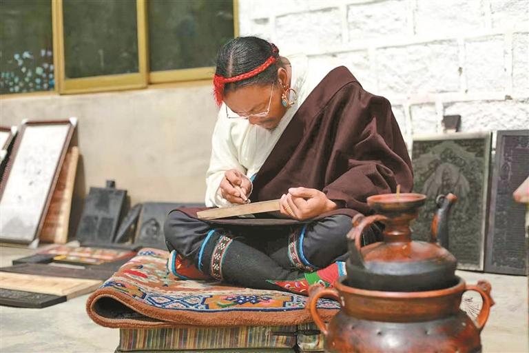 在傳承技藝的過程中,斯曲也面臨著不少挑戰(zhàn)。教徒弟時最大的困難就是讓他們靜下心來,因為這門手藝需要從小學起,不僅要學習拿工具,還要學習認字和雕刻?!耙郧肮馐菍W習雕刻文字,起碼要9個月時間,現(xiàn)在的孩子都很聰明,兩年基本就能掌握雕刻技藝。”斯曲欣慰地說。