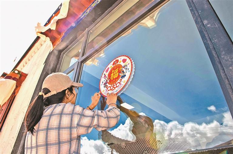 定結(jié)縣郭加鄉(xiāng)乃村重建點,群眾正在為新家貼福字。記者 旦增嘎瓦 攝