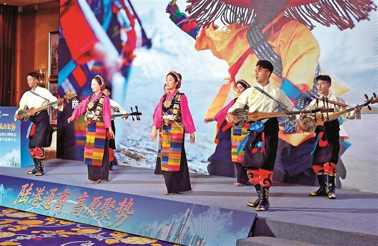 第八屆中國(guó)國(guó)際進(jìn)口博覽會(huì)西藏自治區(qū)招商引資推介會(huì)開(kāi)幕表演。記者 王敏 索朗瓊珠 嘎松卓瑪 攝